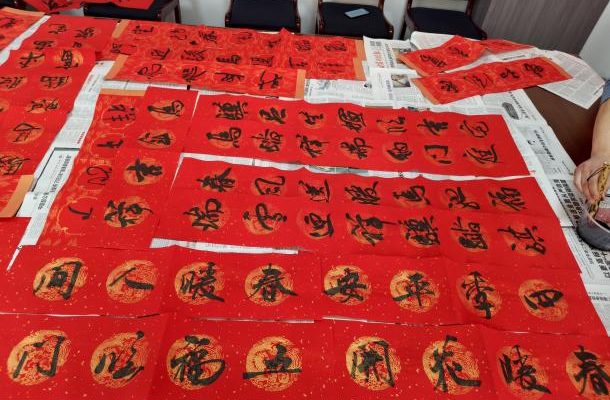 В центре мероприятий партийного здания технологического центра Сянчэн царила атмосфера благоухания чернил и оживления. Каллиграфы и энтузиасты из окружной федерации профсоюзов и профсоюза работников промышленного парка с блеском владели своими кистями. «Пусть удача сопутствует вашей семье, и процветание будет изобильным; пусть удача длится вечно, и ваш бизнес процветает», «Весна возвращается на землю с прекрасными пейзажами; пусть благословения наполнят мир, и пусть радостные события будут в изобилии»… Двустишия, полные благоприятных значений и благословений, наряду с мощными и разнообразными иероглифами «福» (Фу, означающими удачу), словно оживают на бумаге, демонстрируя художественное очарование каллиграфии и передавая сердечные пожелания энергичного развития компании и благополучия ее сотрудников. Сотрудники собирались вокруг столов, чтобы полюбоваться двустишиями и прокомментировать их, тщательно выбирая свои любимые или помогая расстилать бумагу для просушки, их лица сияли от радости. Яркие красные двустишия и иероглифы «福» украсили место проведения мероприятия сильной праздничной атмосферой, создав прекрасную картину.